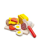 Drewniany Zestaw akcesoriów spożywczych na rzep do krojenia i zabawy 27 elementów Erzi