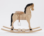 Drewniany koń na biegunach. Piękny rumak z siodłem