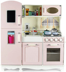 Drewniana kuchnia dla dzieci emitująca dźwięk i światło z akcesoriami kostkarką do lodu