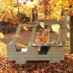 Drewniana kuchnia dla dzieci emitująca dźwięk i światło z akcesoriami kostkarką do lodu