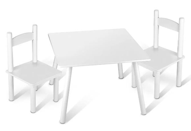 • Komplet mebli dla dzieci: stolik i krzesełka dla dzieci wykonane z drewna o białej barwie ...