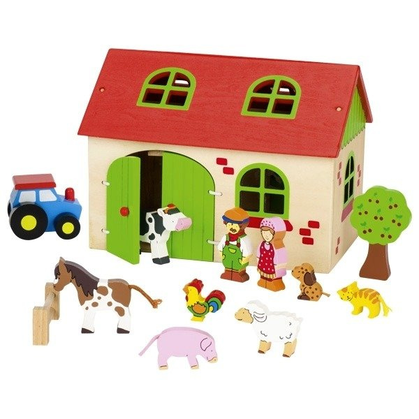 Drewniany domek na wsi marki Goki to zestaw małego gospodarza zawierający drewniane elementy składające się na farmę ze zwierzętami oraz ich gospodarzami. Domek posiada otwierany dach oraz drzwi, dzięki czemu zabawa będzie jeszcze przyjemniejsza. Zestaw marki Goki składa się z 13 drewnianych elementów.