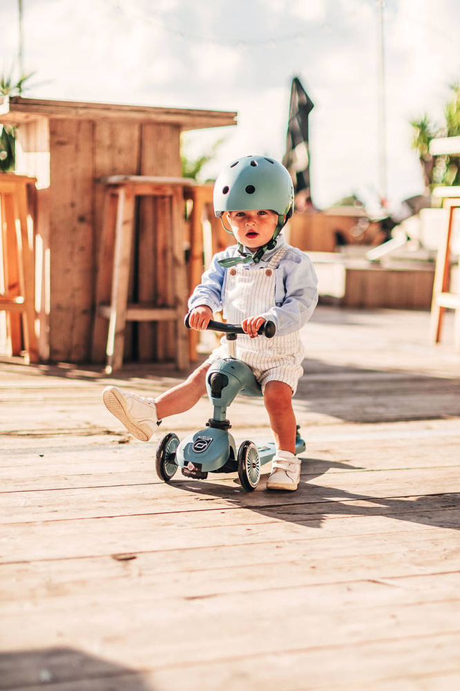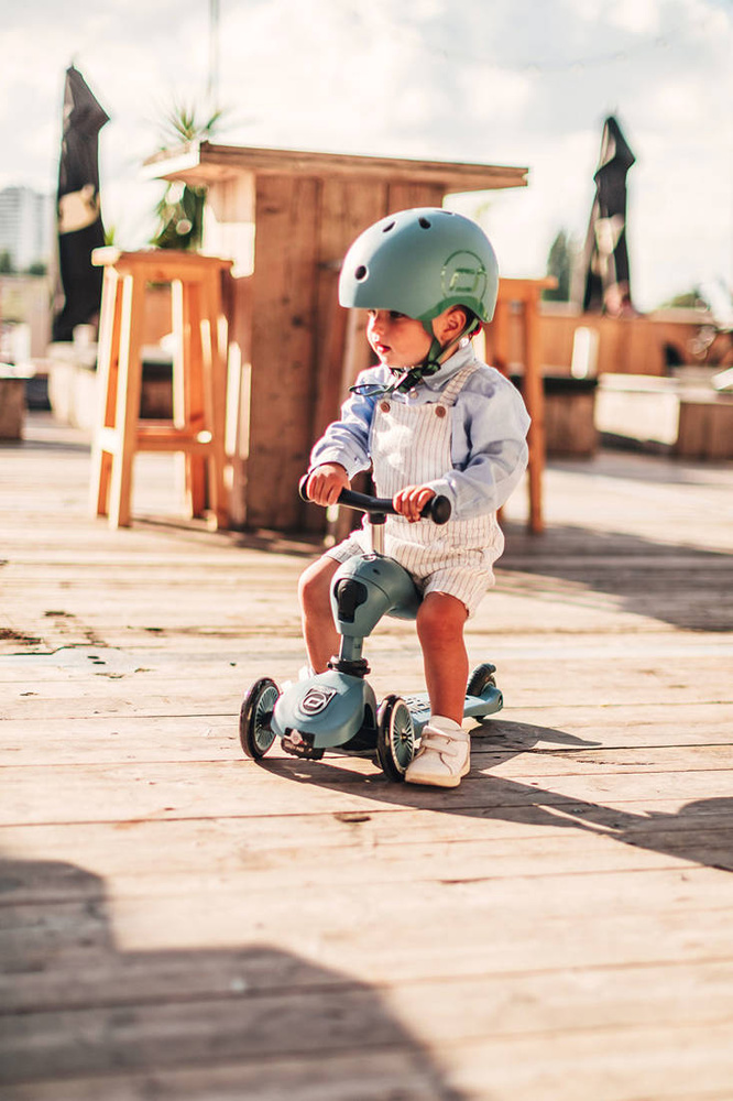 Highwaykick1 to innowacyjna hulajnoga z siedziskiem austriackiej marki SCOOT&RIDE. To idealne rozwiązanie dla aktywnych dzieci, w dodatku „rośnie” razem w nimi. Wysokość siedziska można regulować, a jego najniższa pozycja dostosowana jest do wzrostu stawiających pierwsze kroki maluszków i znajduje się na wysokości 22,5 cm. Bez używania narzędzi, za pomocą jednego guzika można w kilka sekund zamienić pojazd w hulajnogę na 3 kołach – obrócone siedzisko staje się jej przednią ramą. Wystarczy jeszcze przenieść kierownicę (montowana na klik) i gotowe! Teraz także starszak może rozpocząć swoją scaterską przygodę. Hulajnoga jest doskonale zbalansowana i stabilna, komfortowa i na dodatek wyjątkowo bezpieczna. Wyposażona została w opatentowany, rewolucyjny system safety-pad – tj. specjalną szeroką podkładkę, umieszczoną w dole przedniej części, która zapobiega m. in. przewróceniu się na nierównym terenie czy utknięciu kół. Jej pozycję w razie potrzeby również można regulować. Scoot & Ride Highwaykick stanie się towarzyszem zabaw Twojego dziecka na wiele lat.