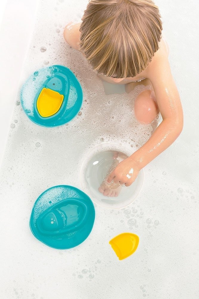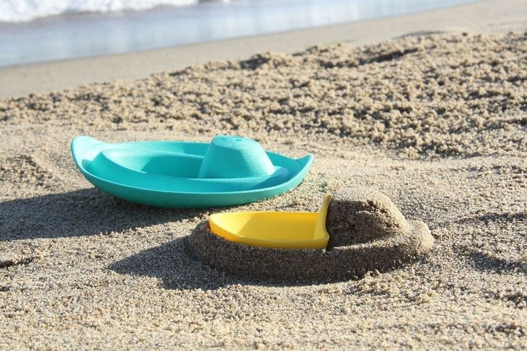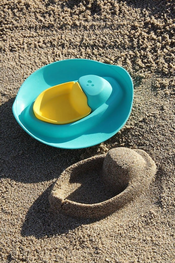 Foremka wielofunkcyjna Łódka Sloopi belgijskiej marki Quut przyciąga wzrok niebanalnym designem i oryginalną kolorystyką. Składa się z 3 lekkich i łatwych do utrzymania przez dziecko elementów: dużej turkusowej łódki-kutra, mniejszej żółtej łódeczki oraz przeźroczystej pokrywki. Łódki unoszą się na wodzie, a ich szerokie dna sprawiają, że są bardzo stabilne. Większa sprawdza się też jako foremka do budowania łodzi z piasku. Z kolei transparentna pokrywka może pełnić rolę „okna”, przez które dziecko zajrzy pod wodę lub powierzchnię piany w wannie. Zabawkami można się bawić osobno lub złożyć je w jedną całość dla wygodniejszego przechowywania i przenoszenia zestawu. Gwarantują inteligentną aktywność w domu i na świeżym powietrzu, i to przez cały rok. Sprawdzą się bowiem nie tylko do zabaw w piasku (w tym w piaskownicy), ale także w wodzie (w wannie), śniegu czy ogrodzie.