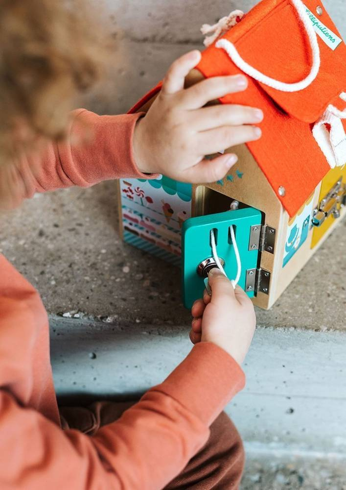 Drewniany domek manipulacyjny z zamkami Lisek Włamywacz Lilliputiens
