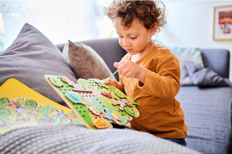 Świetna zabawa poprzez nawlekanie odpowiednich elementów na planszę.