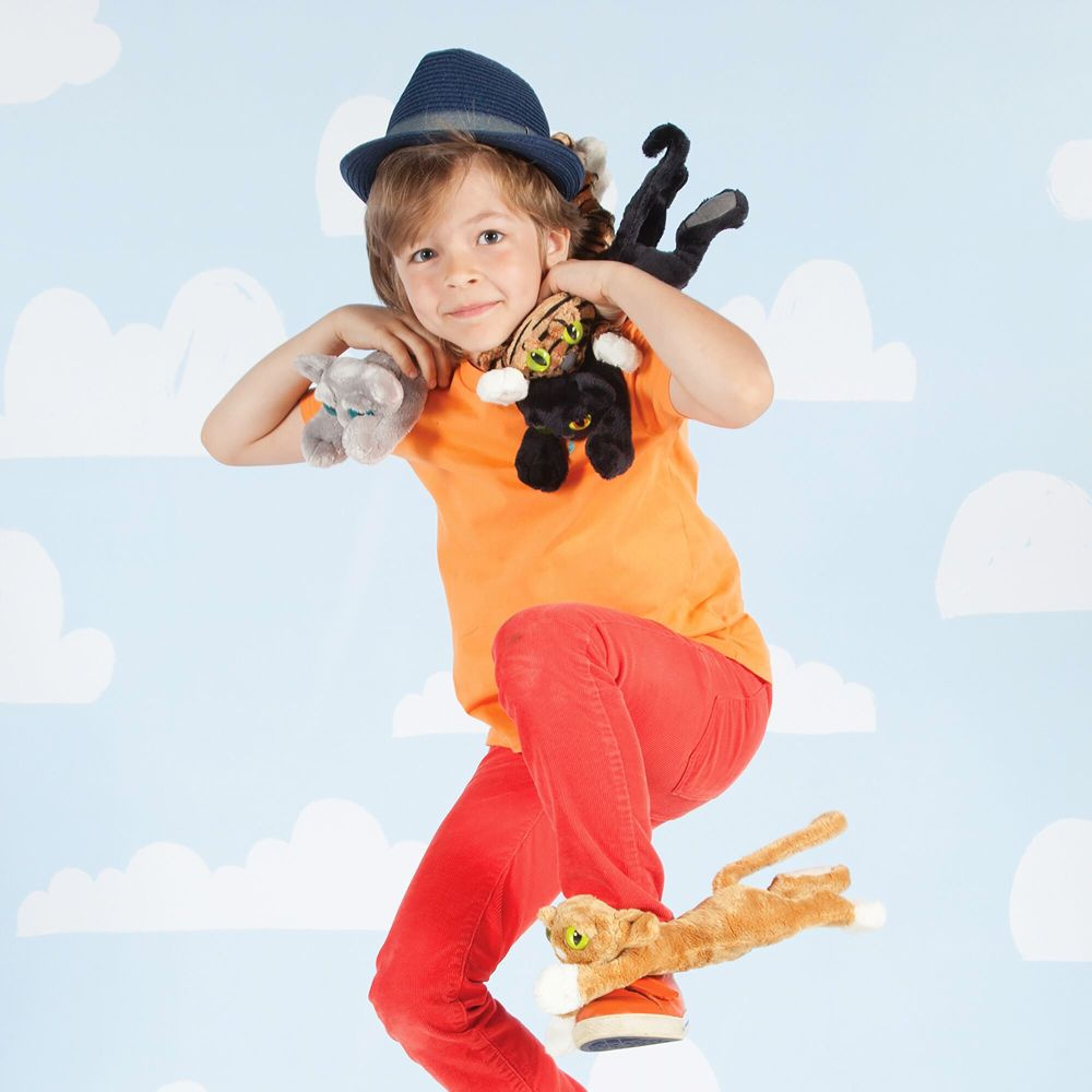 Uroczy różowy kot o smukłej, długiej sylwetce i charakterystycznych dużych oczach. Jedwabiście miękka tkanina aż prosi się, by ją pogłaskać.