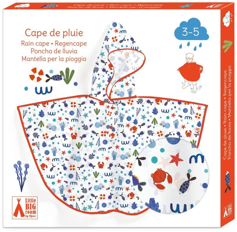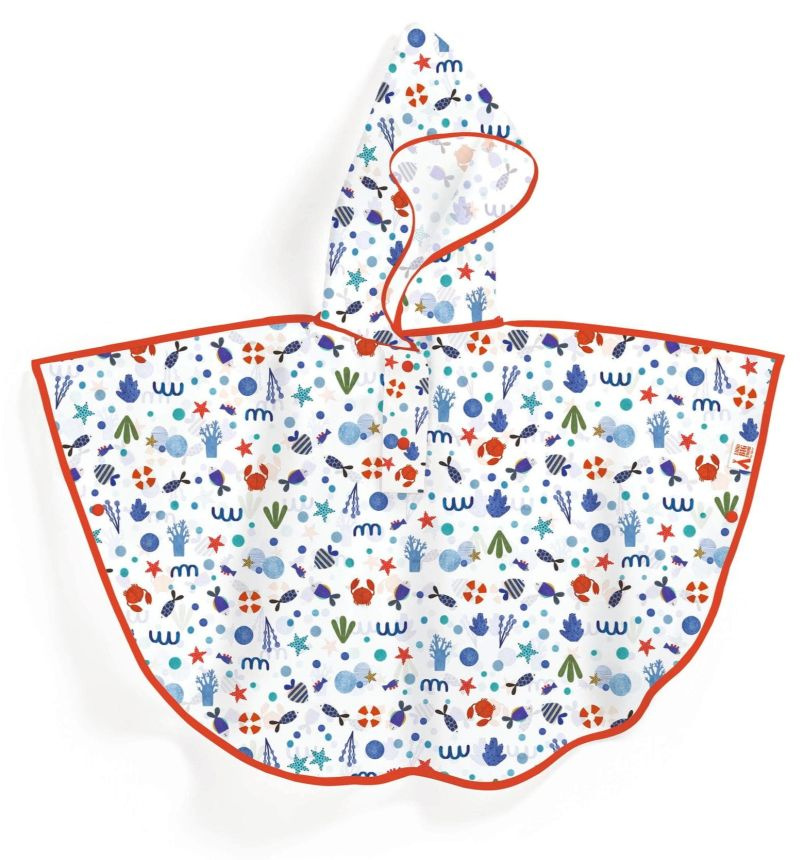 Transparentna peleryna przeciwdeszczowa dla dzieci z motywem oceanu Djeco to idealne rozwiązanie na outdoorowe zabawy podczas kapryśnej pogody.