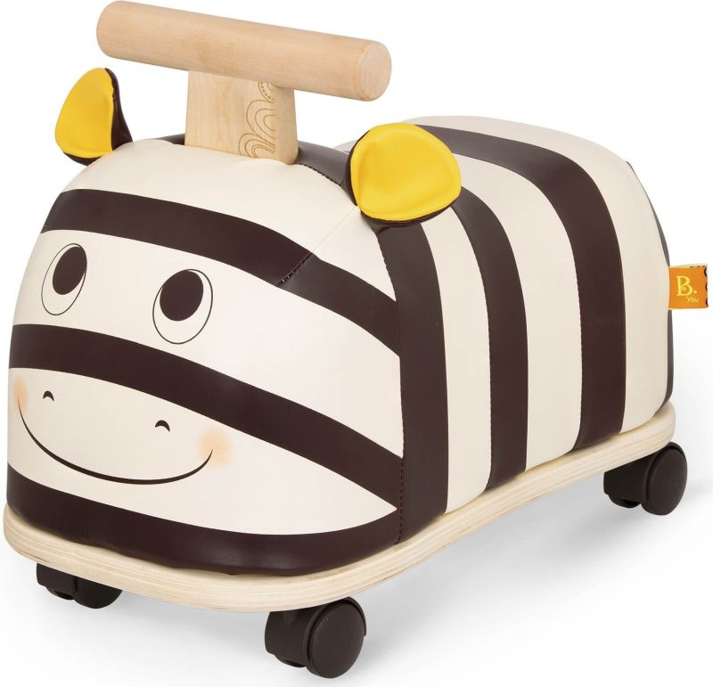 Jeździk-zebra posiada 4 koła, które obracają się dookoła własnej osi i zapewniają pełną stabilność. Zaokrąglone siedzisko dziecięcego jeździka B.Toys obito przyjemnym w dotyku materiałem, który łatwo utrzymać w czystości.