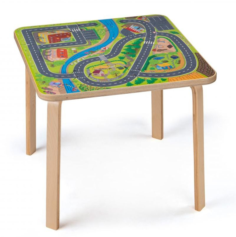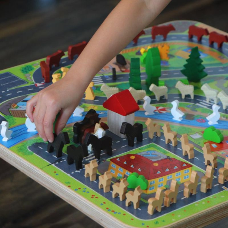 Czas na kreatywną zabawę! Stoliczek drewniany dla dzieci Miasto Erzi to niebanalny mebel, który zamienia codzienne zabawy w ekscytującą podróż po mieście. Kolorowy nadruk z ulicami i budynkami pobudza wyobraźnię dziecka, zachęcając do tworzenia własnych historii. Wykonany z wytrzymałej sklejki brzozowej, stoliczek nie tylko służy przez lata, ale i pięknie prezentuje się w dziecięcych wnętrzach. Doskonałe uzupełnienie dziecięcego pokoiku, kącików zabaw a także poczekalni.