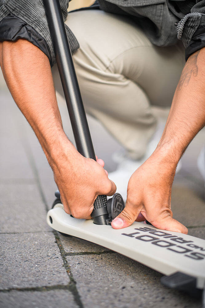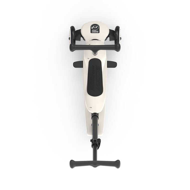 Bez używania narzędzi, za pomocą jednego guzika można w kilka sekund zamienić pojazd w hulajnogę na 3 kołach – obrócone siedzisko staje się jej przednią ramą. Wystarczy jeszcze przenieść kierownicę (montowana na klik) i gotowe! Teraz także starszak może rozpocząć swoją scaterską przygodę.