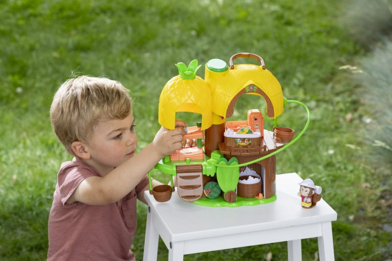 Domek z otwieranym dachem w kształcie ananasa skrywa kuchnię, łazienkę, sypialnię i wyjątkową windę z liany. W środku mieszka urocza małpka, która uwielbia przyjmować gości.