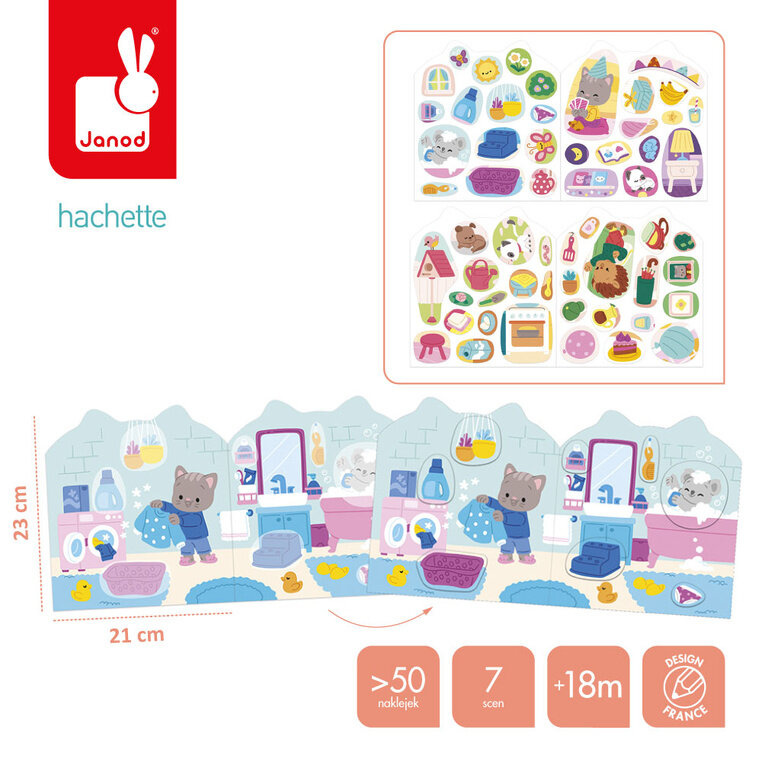 Niech Twoje dziecko stworzy swój własny, mały świat. Książeczka z naklejkami Dom Janod to kolorowa zabawa dla najmłodszych. Zawiera 7 scen do wyklejania oraz ponad 50 naklejek, które dzieci mogą używać do samodzielnego tworzenia ilustracji. Dzięki tej książeczce maluchy rozwijają swoją wyobraźnię i zdolności manualne. Produkt został zaprojektowany we Francji przez markę Janod we współpracy z grupą mediową Hachette. Książeczka z naklejkami Dom Janod jest doskonałym pomysłem na prezent dla 2 latki i starszych dzieci.