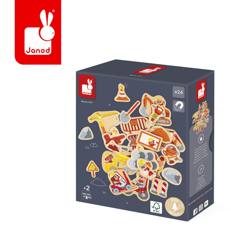 Magnesy drewniane dla dzieci Plac budowy 24 szt. Janod
