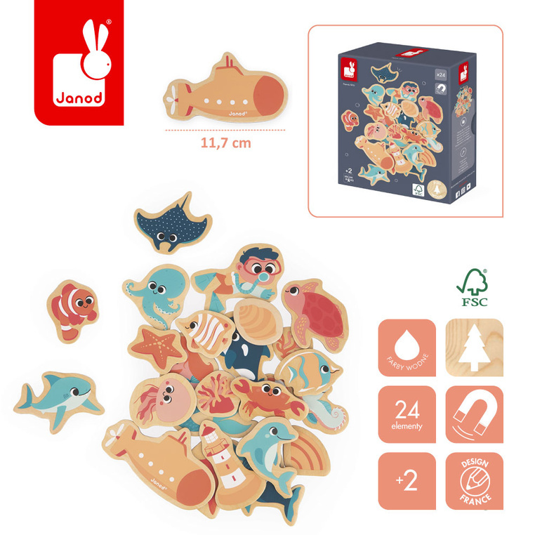 Magnesy drewniane dla dzieci Podwodny świat 24 szt. Janod