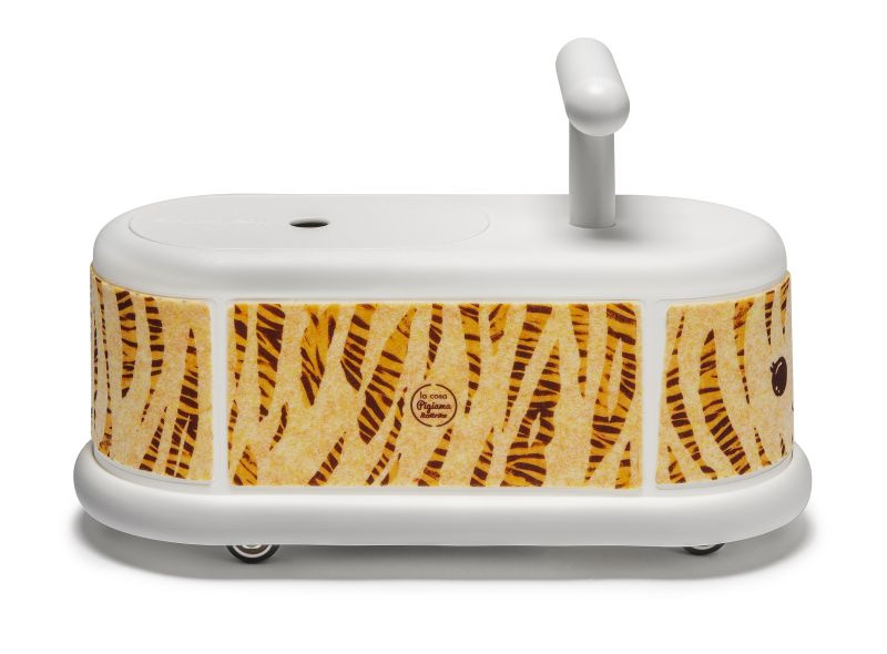 Wspaniały pojazd, który rozbudza wyobraźnię maluchów, wykonany w nowym, unikatowym stylu.  Jeździk dla dzieci Tygrys Pigiama La Cosa Italtrike jest stabilny i zaskakująco zwrotny. Zawdzięcza to wytrzymałej konstrukcji oraz kołom pozwalającym bezszelestnie sunąć po pokoju, przednia para obraca się o 360 stopni umożliwiając precyzyjne manewrowanie zarówno w pomieszczeniach jak i podczas zabawy na świeżym powietrzu.