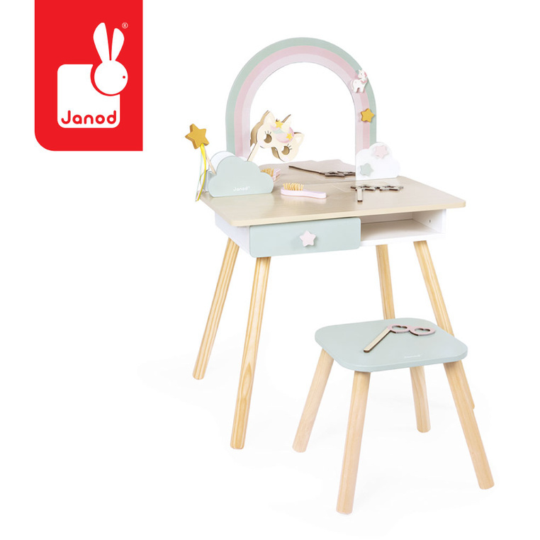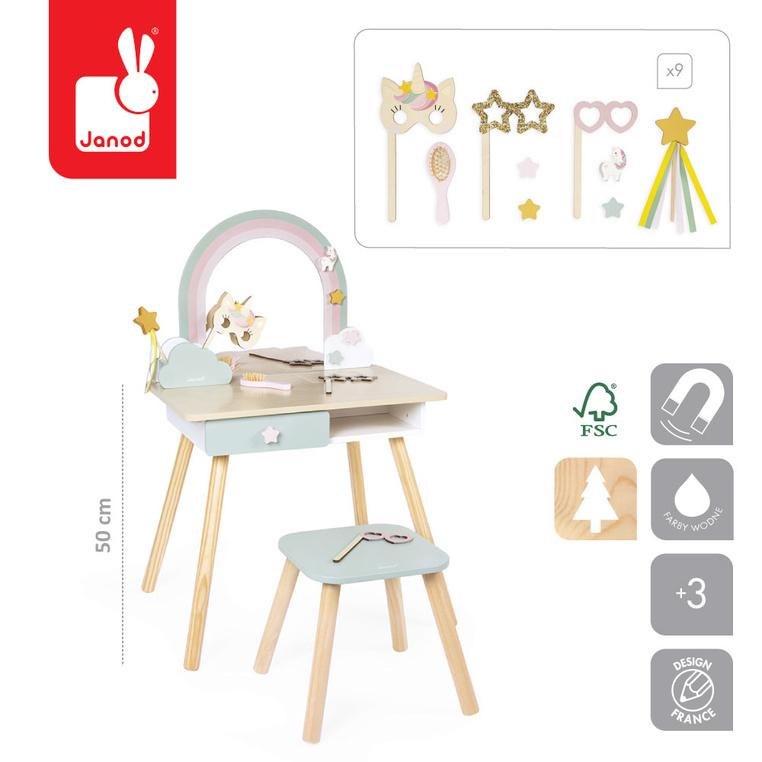 Duża toaletka drewniana Jednorożec 11 el Janod