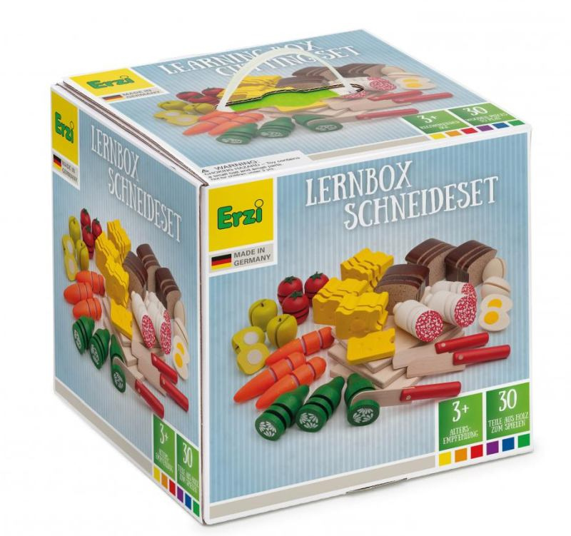 Drewniany zestaw akcesoriów spożywczych marki Erzi to idealna propozycja dla dzieci powyżej 3. roku życia, składa się z aż 27 elementów i został stworzony z myślą o nauce przez zabawę. Dzięki realistycznym drewnianym elementom dzieci mogą bezpiecznie poznawać podstawy przygotowywania posiłków, ćwicząc przy tym zdolności manualne i koordynację wzrokowo-ruchową.