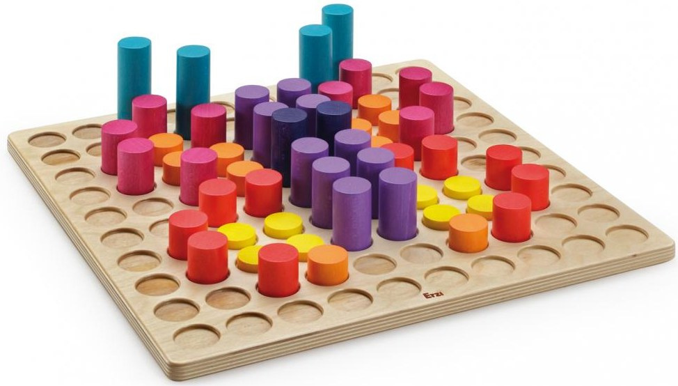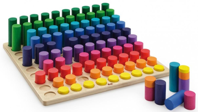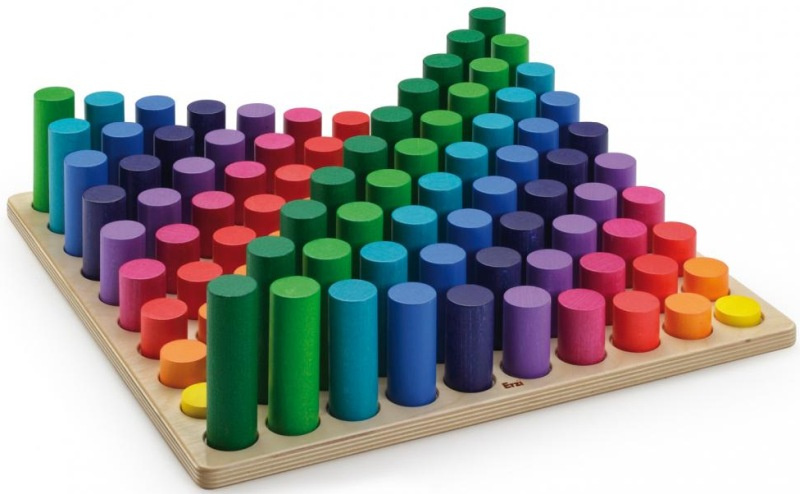 Kolorowy zestaw dydaktyczny oparty na teorii mnogości, stworzony z myślą o dzieciach od 5. roku życia. Zawiera 100 cylindrów w 10 wysokościach i kolorach oraz dużą perforowaną tablicę. Umożliwia naukę porównywania, sekwencjonowania, sortowania i klasyfikowania obiektów.