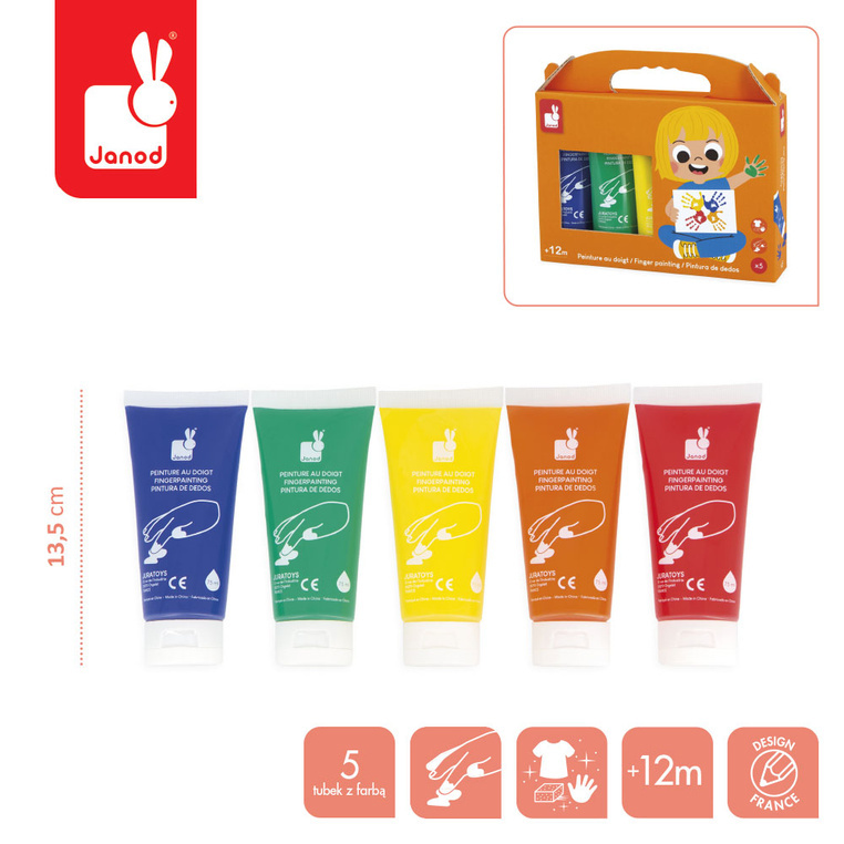 Farbki do malowania rękami 5 kolorów Janod