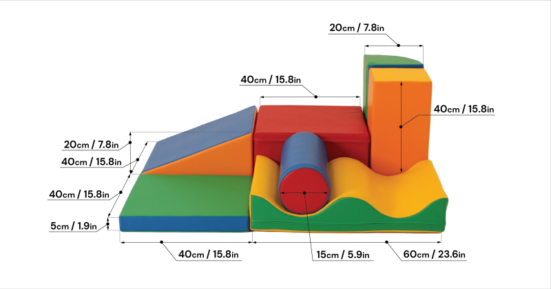 Zestaw został zaprojektowany z myślą o wszechstronnym rozwoju dzieci. Składa się z modułowych, miękkich elementów, które można swobodnie aranżować. To świetna propozycja dla wszystkich, którzy chcą stworzyć miejsce dla dzieci wspierające motorykę, koordynację i wyobraźnię.