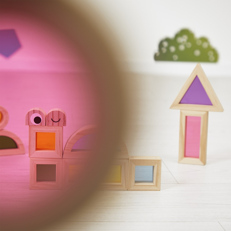Zabawa z kolorem i światłem może być początkiem wielu dziecięcych przygód. Sensoryczne klocki drewniane dla dzieci przeźroczyste kolorowe Janod zachęcają do układania, dopasowywania i odkrywania nowych kształtów oraz wzorów.