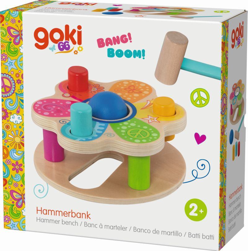 Kolorowa, solidna i pełna frajdy. Przebijanka drewniana Flower Power Hammer bench Goki to zabawka, która rozwija sprawność rączek i uczy rozpoznawania kolorów już od pierwszych lat życia.