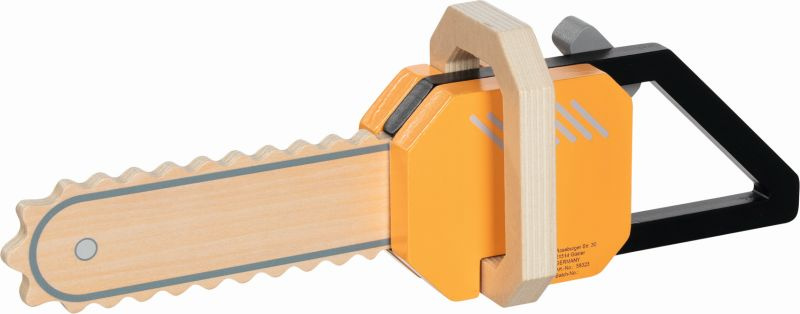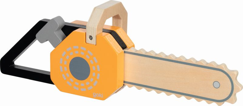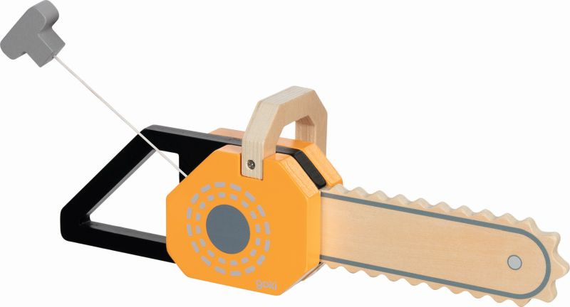 Drewniana piła łańcuchowa Goki z realistycznym dźwiękiem to bezpieczne narzędzie do twórczej zabawy w warsztacie. Wspiera rozwój motoryki i kreatywności.