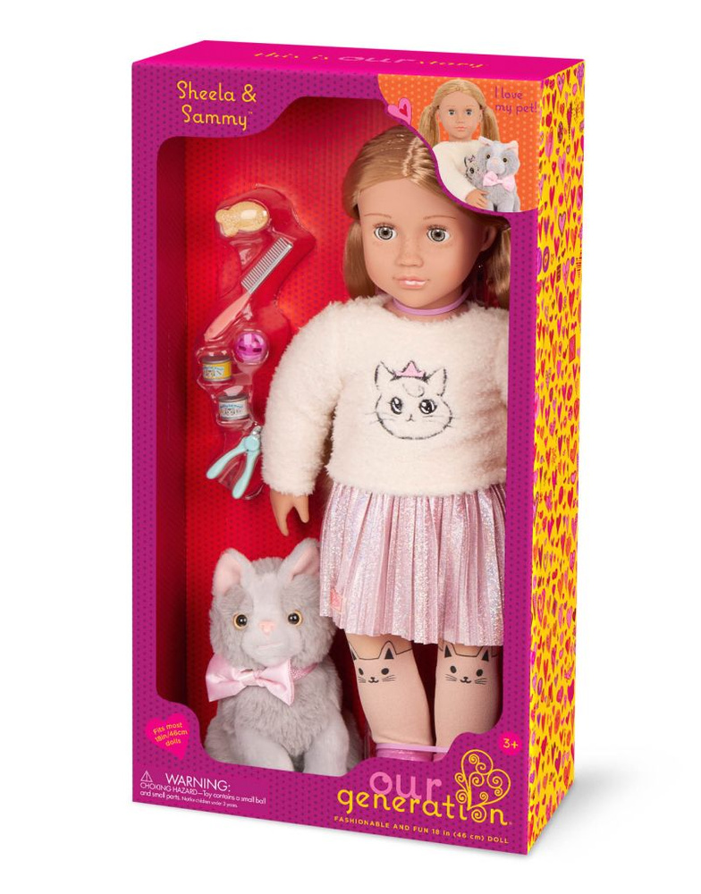 Sheela i jej kotek kartuski Sammy to duet, który podbije serce każdego dziecka. Ta 46-centymetrowa lalka zachwyca swoją delikatną urodą, pięknymi włosami i realistycznymi detalami, takimi jak urocze piegi na twarzy.