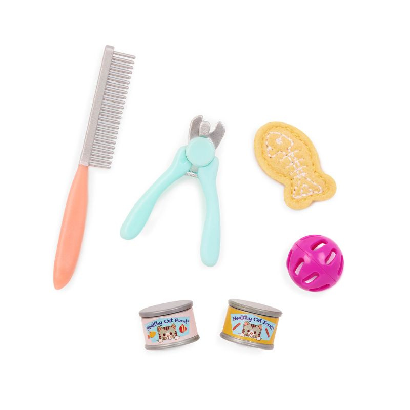 W zestawie znajduje się także jej ukochany kotek kartuski, a wraz z nim akcesoria do pielęgnacji i zabawy: puszki karmy, grzebień, piłeczka i mała rybka. To doskonały pomysł na prezent dla dziecka, które marzy o własnym zwierzątku i uwielbia zabawy w opiekę nad pupilem.