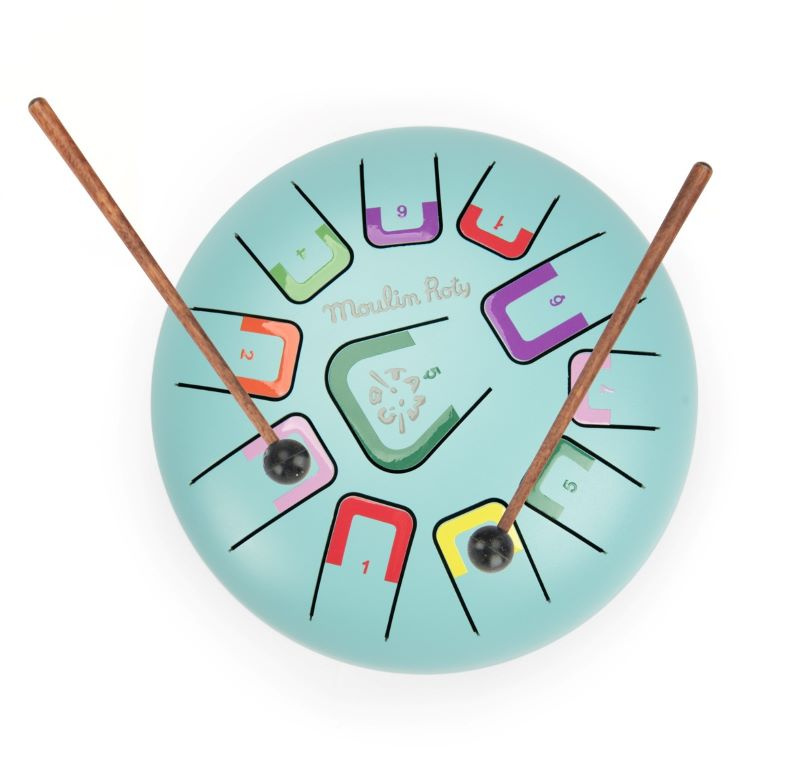 Bębenek językowy duży PUCE & PILOU jasnoniebieski Moulin Roty to wyjątkowy instrument, który wprowadza dzieci w świat muzyki poprzez zabawę i naukę rytmu. Dzięki kolorowym nutom i prostemu systemowi gry rozwija słuch, koordynację oraz wrażliwość muzyczną już od najmłodszych lat.