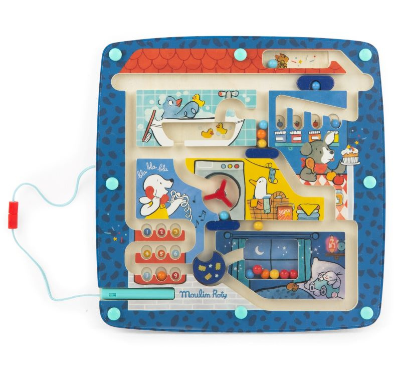 Magnetyczny labirynt drewniany Zwierzątka w domu Moulin Roty