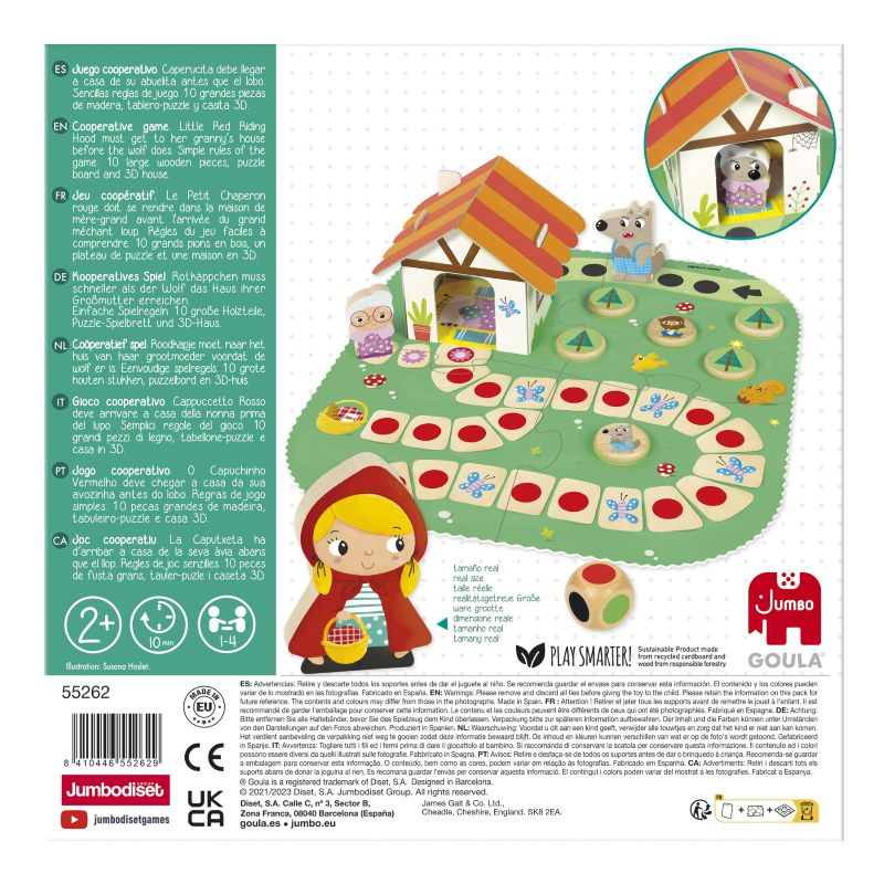 Kolorowa planszówka Goula Czerwony Kapturek w prosty sposób uczy dzieci współpracy i logicznego myślenia. To przyjemna gra dla maluchów od 2 roku życia, która przenosi znaną bajkę na planszę.