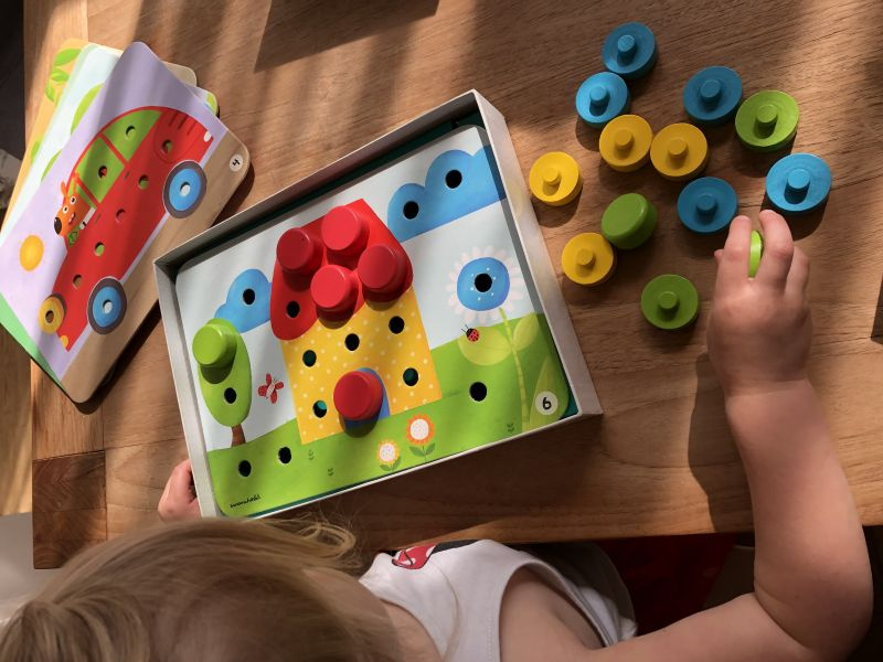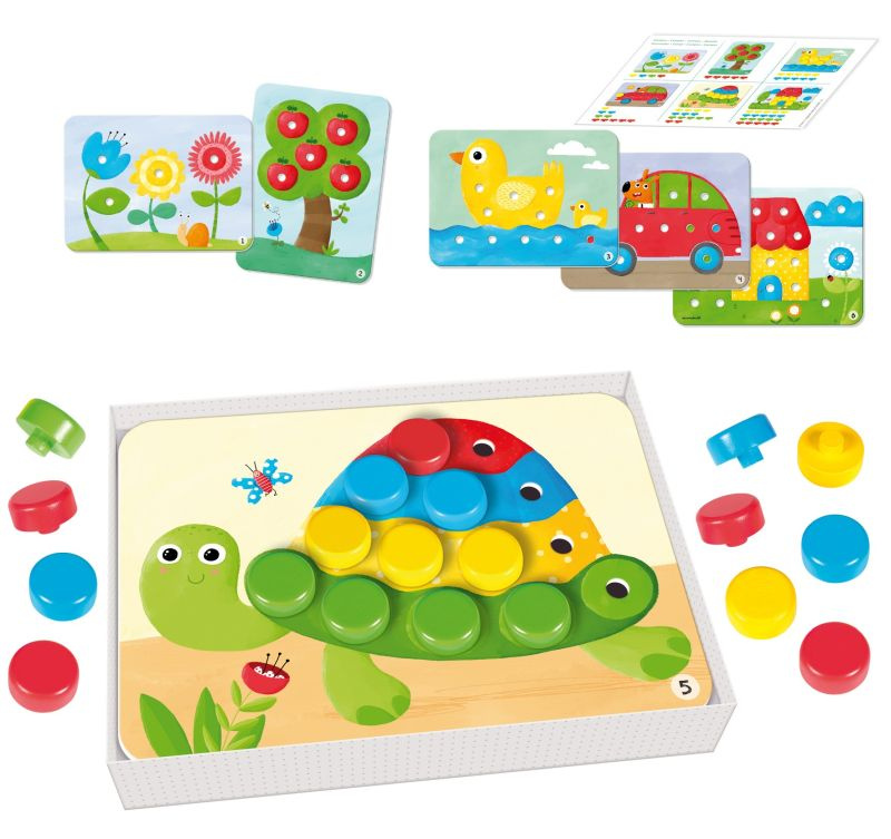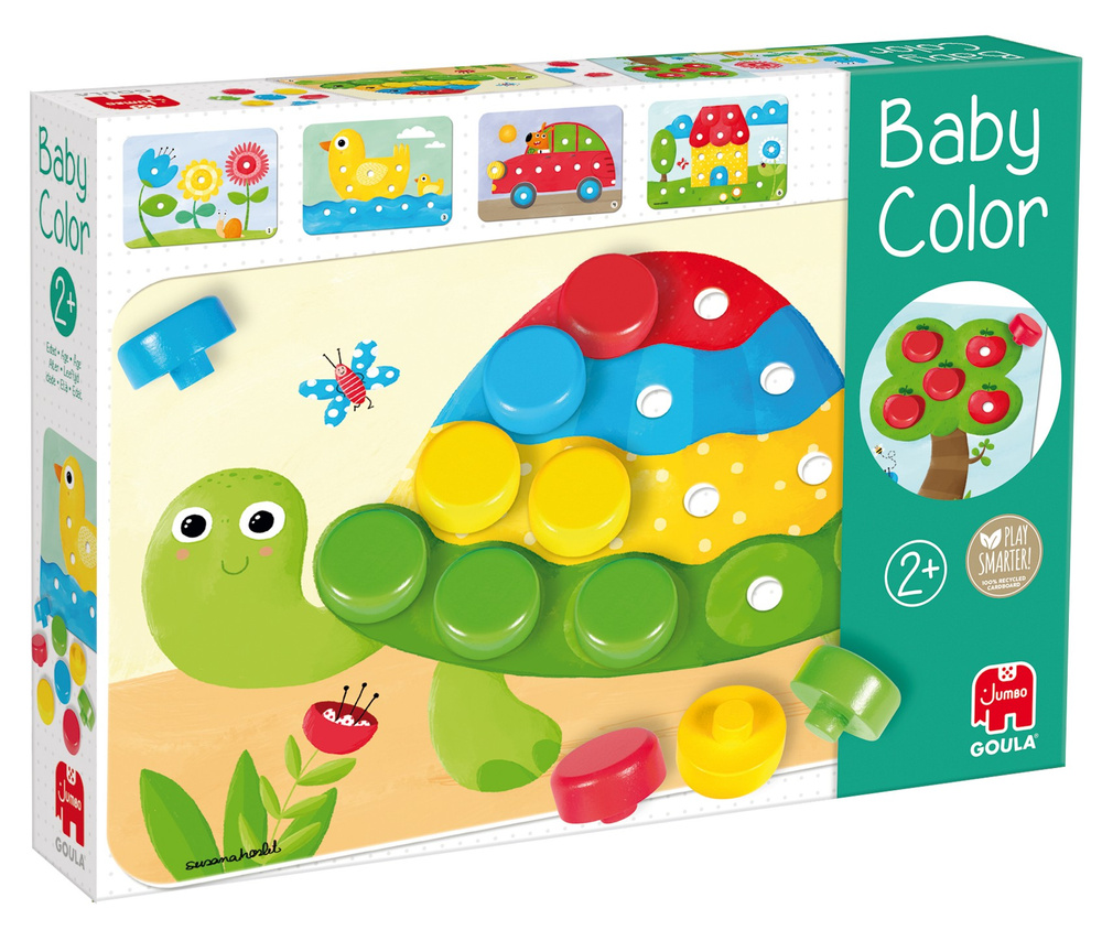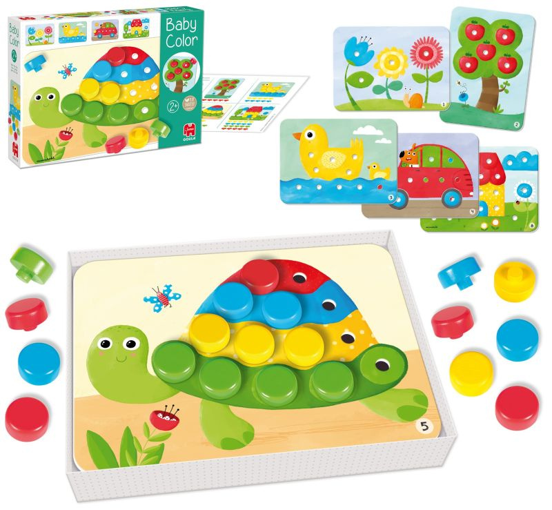 Wesołe obrazki, duże kolorowe guziki i mnóstwo radości z dopasowywania. Układanki Baby Kolory Goula rozwija małe rączki i wielką ciekawość świata.