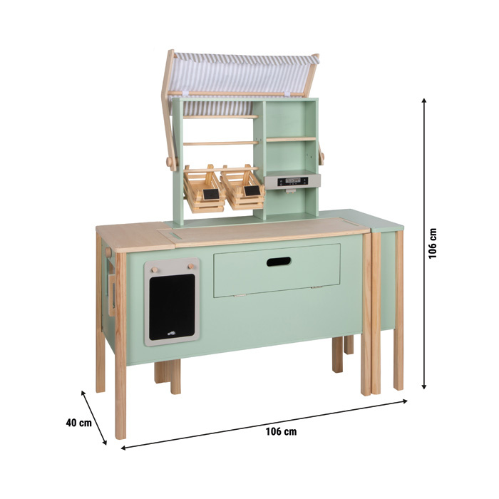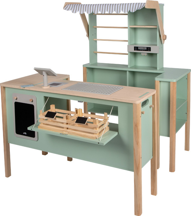 Drewniana kuchnia dla dzieci i sklep 2w1 szałwia zielona Fresh Small Foot