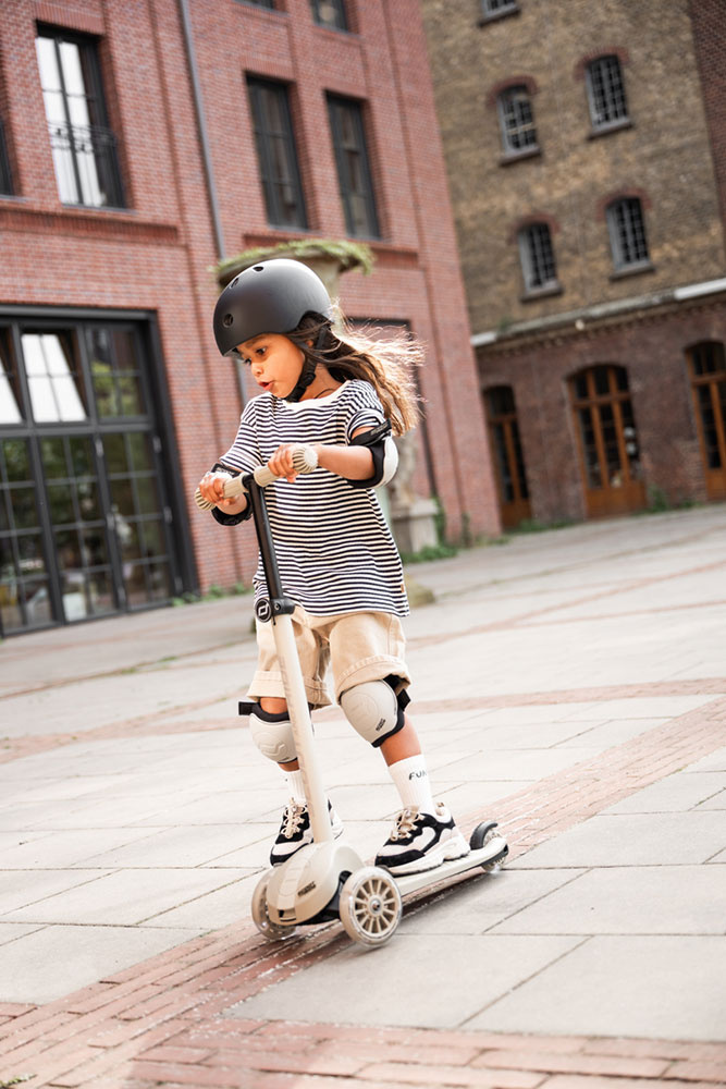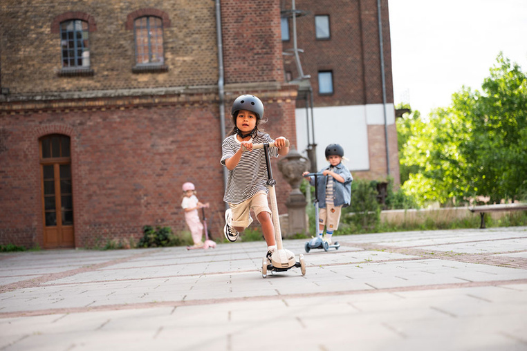 Innowacyjny, podwójny sposób kierowania hulajnogą zapewnia zupełnie nowe wrażenia z jazdy: dzieci mogą sterować hulajnogą intuicyjnie, przenosząc ciężar ciała na boki – jest to idealne rozwiązanie do ćwiczenia równowagi, świadomości ciała i koordynacji w zabawie – oraz bardziej tradycyjnie, kręcąc kierownicą. Ten elastyczny sposób kierowania hulajnogą rozwija się wraz z umiejętnościami młodych użytkowników, wzmacnia ich pewność siebie, wspiera rozwój motoryczny i pozwala im aktywnie i samodzielnie odkrywać swój styl jazdy.