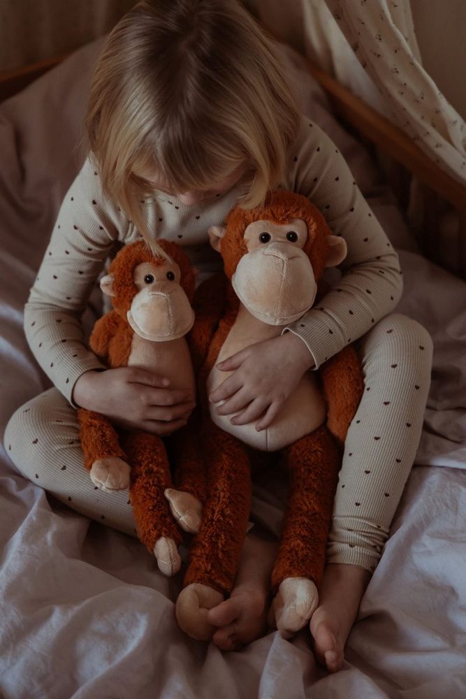 Miękka pluszowa małpka o terapeutycznej wadze 1,8 kg zapewnia kojący nacisk, który sprzyja wyciszeniu i poczuciu bezpieczeństwa. Sprawdzi się jako wsparcie sensoryczne w codziennych chwilach odpoczynku i relaksu.
