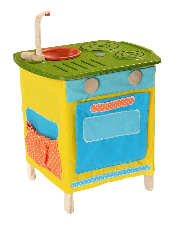 Kuchnia dla dzieci Plan Toys składa się z blatu z dwoma palnikami, piekarnika, zlewu, przestrzeni do mycia naczyń oraz miejsca do przygotowania żywności. Po boku umieszczone są kieszonki na przybory kuchenne. Kuchnia dla dzieci ma kran i gałki, które sprawiają, że wygląda bardzo realistycznie. Tkaniny można prać. Kuchnia Plan Toys z pewnością sprawi dużo radości małym kucharzom podczas zabawy w domu, zabawy w gotowanie.