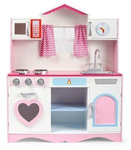 Drewniana kuchnia dla dzieci emitująca dźwięk i światło z akcesoriami kostkarką do lodu