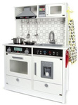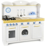 Drewniana kuchnia zabawkowa dla dzieci z bogatym wyposażeniem
