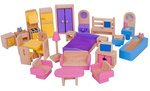 Mebelki dla lalek z drewna Pełen wystrój Bigjigs Toys